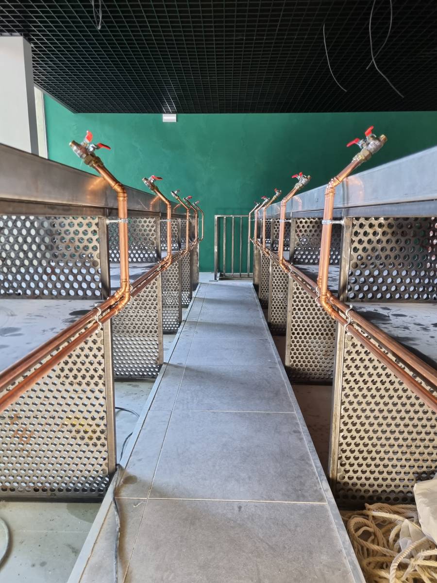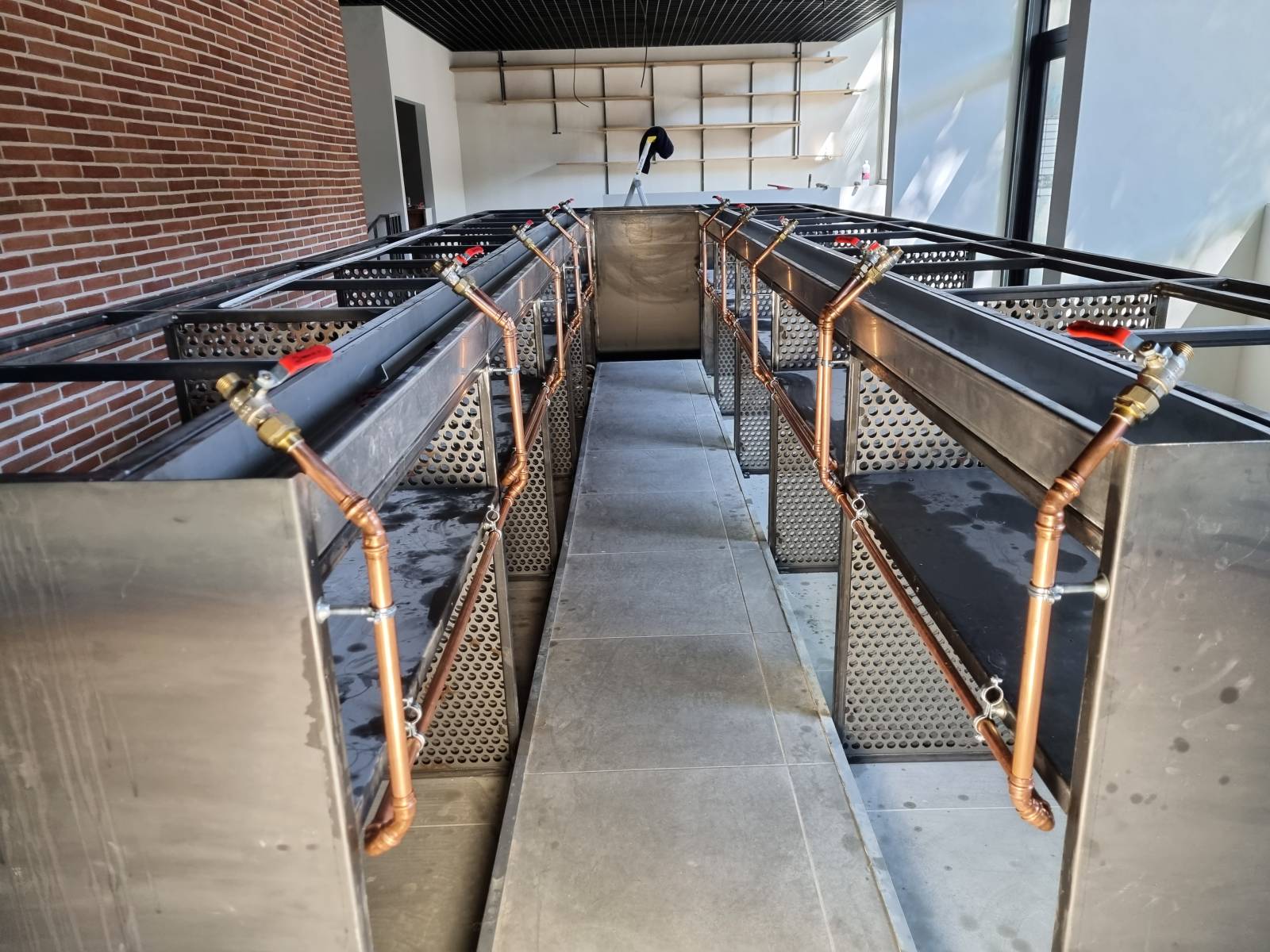 La particularité du chantier résidait sur les différents points de puisage destinés aux futurs clients du local (cf photos).