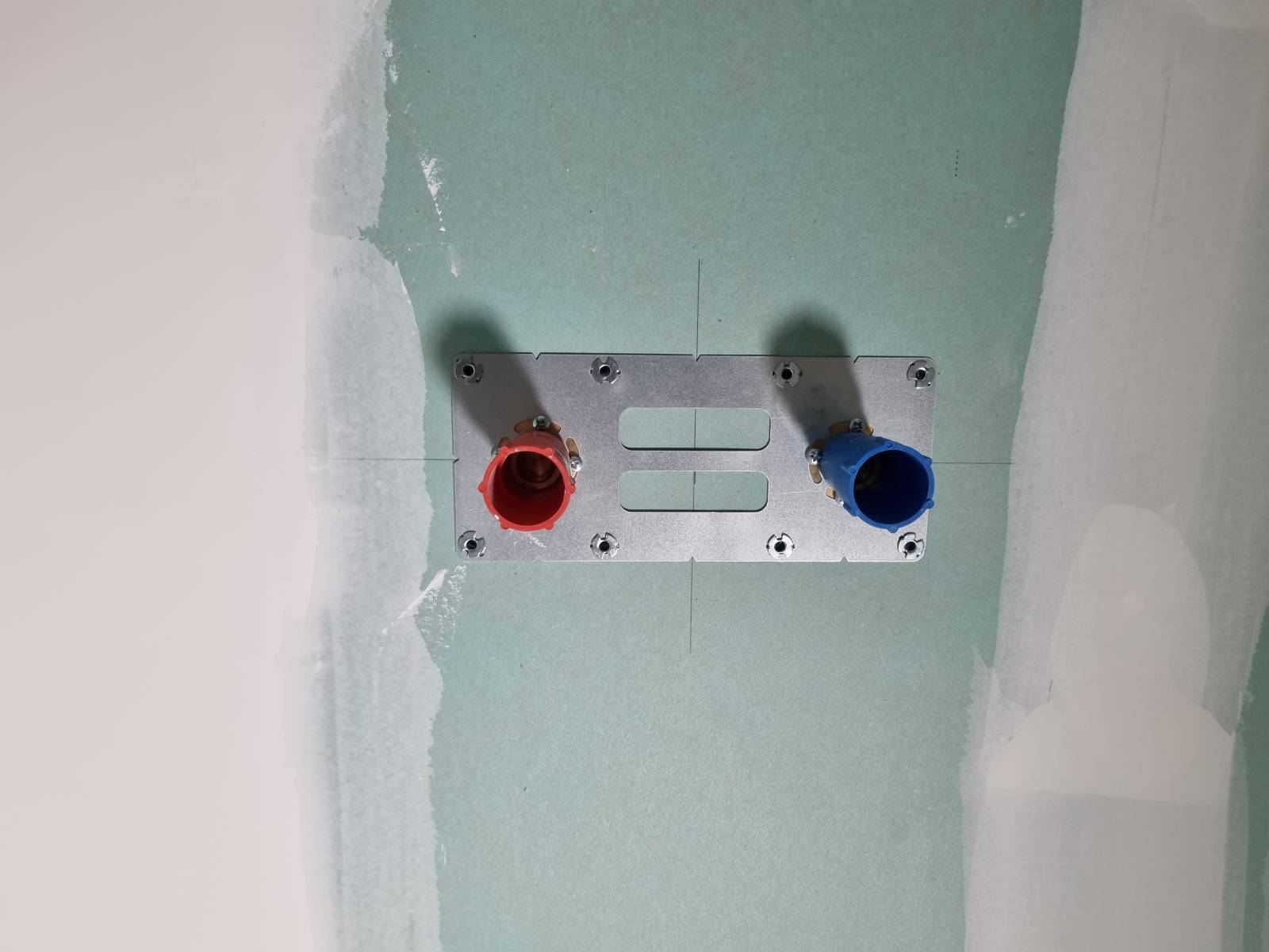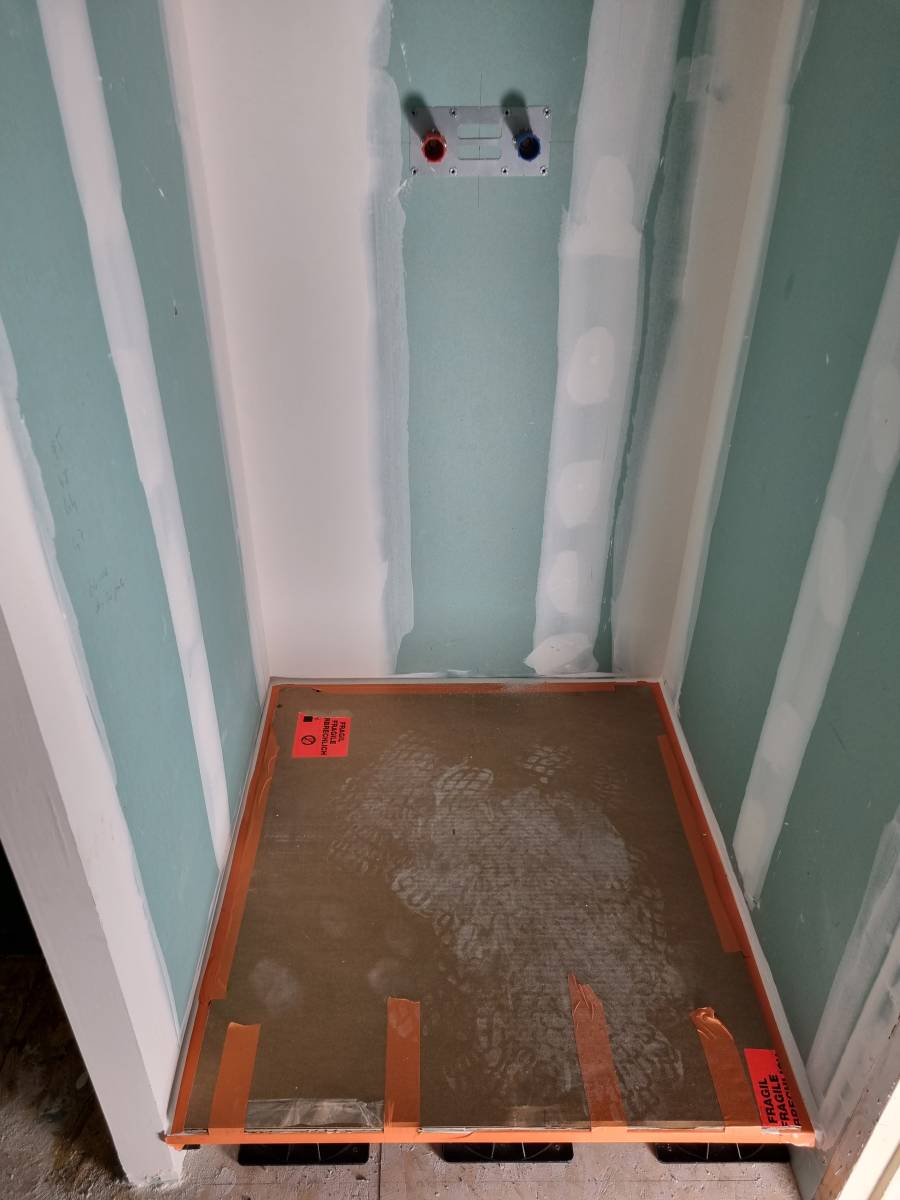 Ensuite, le réseau de plomberie (évacuations, eau froide sanitaire et eau chaude sanitaire) a été entièrement remis à neuf. Des tests d’étanchéité poussés ont été faits avant d’encastrer définitivement les réseaux.