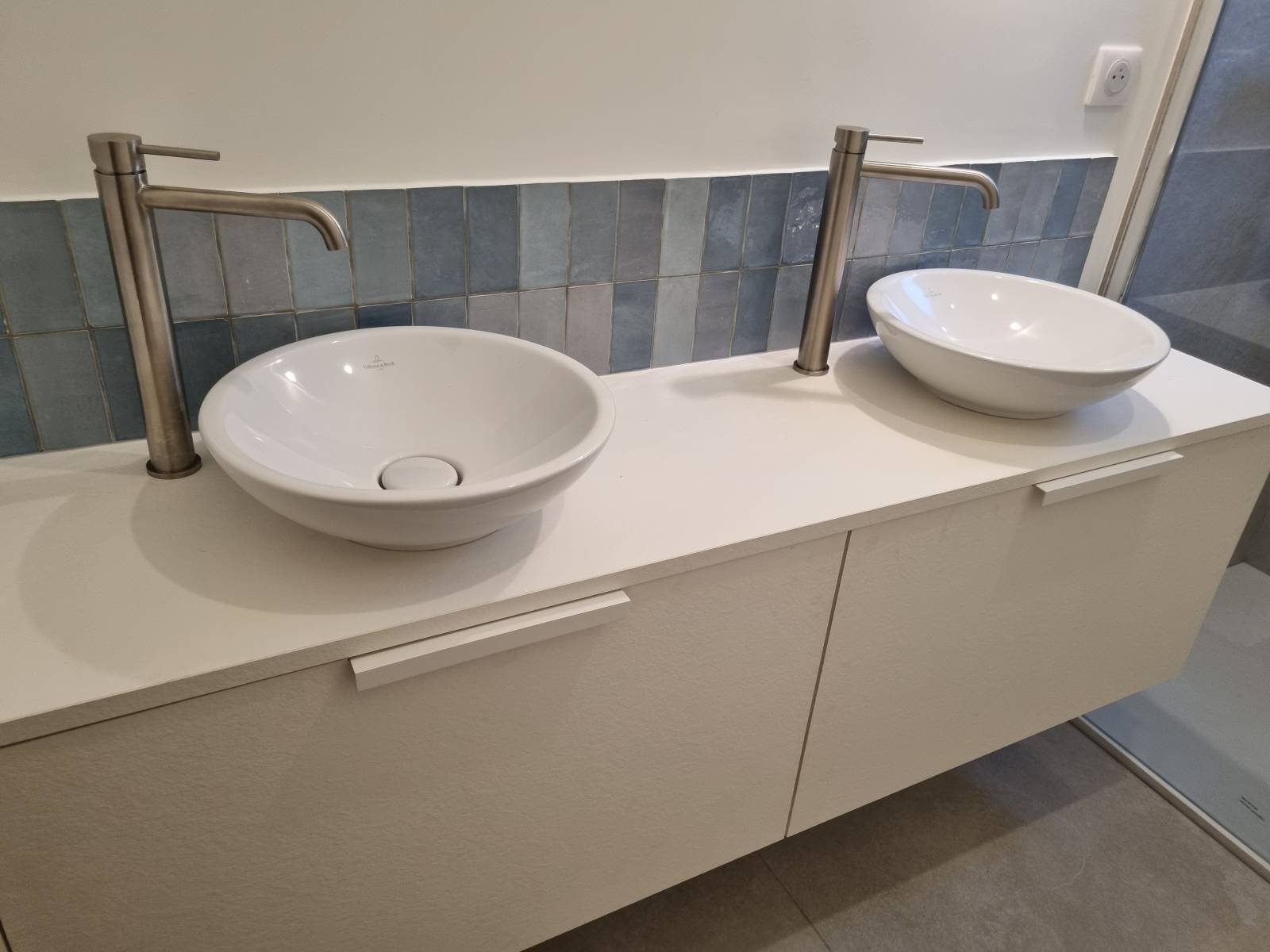Nous avons ensuite installé les différents éléments sanitaires choisis de concert avec notre client. Les finitions ont été soignées afin que l’ensemble soit particulièrement harmonieux.
